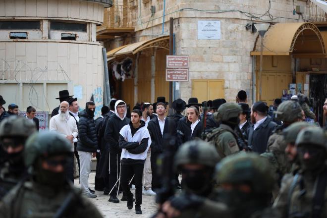جولة استفزازية للمستوطنين بحماية قوات جيش الاحتلال الإسرائيلي في مدينة الخليل، جنوب الضفة الغربية ، 10 يناير/كانون الثاني 2026. تصوير مأمون وزواز