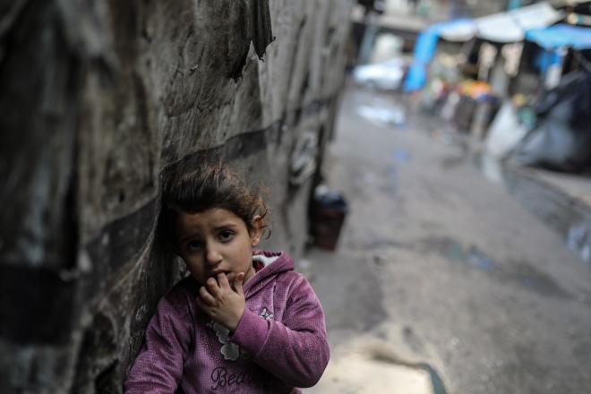 يعيش الفلسطينيون النازحون في خيام وملاجئ مؤقتة في مدارس الأونروا بعد أن دمرت الغارات الجوية الإسرائيلية منازلهم. وتمنعهم القيود التي يفرضها "الخط الأصفر" العسكري الإسرائيلي من العودة إلى أحيائهم، بينما يُفاقم الحصار وقلة المساعدات من نقص المياه والغذاء في مدينة غزة.