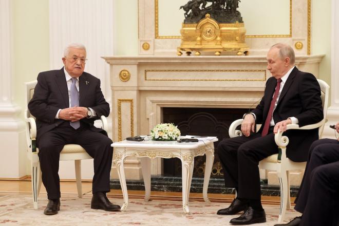 وحسب وكالة الأنباء الفلسطينية الرسمية وفا ، بحث أبومازن، مع رئيس روسيا الاتحادية فلاديمير بوتين، في لقاء قمة عقد في القصر الرئاسي بالعاصمة الروسية موسكو، اليوم الخميس، آخر المستجدات والتطورات السياسية في الأراضي الفلسطينية.