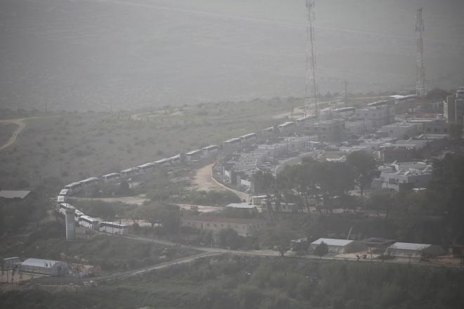 تجمعت حافلات إسرائيلية داخل مستوطنة شافي شومرون لحضور مراسم غرس الأشجار بمناسبة عيد يهودي، في الأراضي الفلسطينية قرب نابلس بالضفة الغربية. 2 فبراير/شباط 2026.