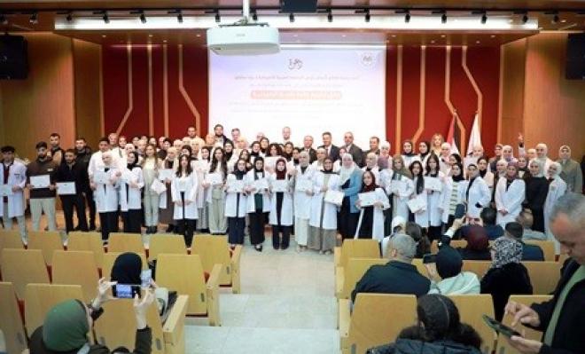 وبدورها، اشارت الدكتورة فداء العارضة ممثلة وزارة الصحة الفلسطينية الى ان مهنة الصيدلة أصبحت ركيزة محورية في تحقيق سلامة المرضى وتعزيز الاستخدام الأمثل للأدوية والمشاركة الفاعلة في الوقاية والعلاج وهو ما يتطلب علما راسخا واخلاقا مهنية عالية واحساسا عميقا بالمسؤولية، وأوضحت ان وزارة الصحة تعول على الطلبة الخريجين في دعم مسيرة التطوير الصحي والبحث العلمي والابتكار في المجال الدوائي.