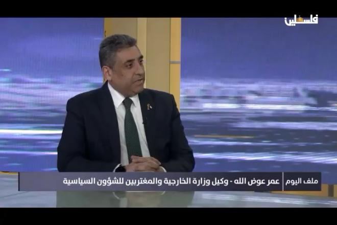قال د.عمر عوض الله، وكيل وزارة الخارجية والمغتربين الفلسطينية للشؤون السياسية، إن القيادة الفلسطينية تجري اتصالات دبلوماسية مكثفة مع أطراف عربية ودولية للتصدي لقرارات إسرائيل الأخيرة المتعلقة بتسوية وتسجيل الأراضي في الضفة الغربية.