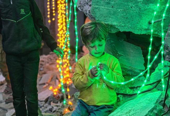 ورغم الدمار الواسع النطاق الناجم عن حرب الإبادة الإسرائيلية على القطاع، يعلق السكان زينة رمضان التقليدية في الشوارع، مما يخلق جواً احتفالياً وروحانياً حتى وسط الركام والمعاناة.