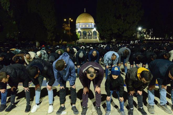 أدى نحو 50 ألف مصلٍ، مساء الأحد 22 فبراير/شباط 2026 ، صلاتي العشاء والتراويح في رحاب المسجد الأقصى، رغم القيود والإجراءات المشددة التي فرضتها قوات الاحتلال الإسرائيلي على دخول المصلين.