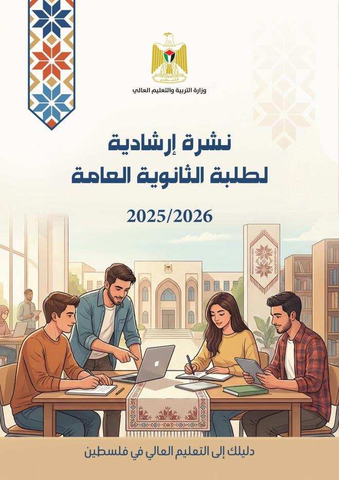 أصدرت وزارة التربية والتعليم العالي الفلسطينية، من خلال وحدة الإرشاد والتوجيه والشؤون الطلابية، اليوم، نشرةً إرشادية لطلبة الثانوية العامة حول الدراسة في مؤسَّسات التعليم العالي الفلسطينية وغير الفلسطينية للعام 2025-2026.