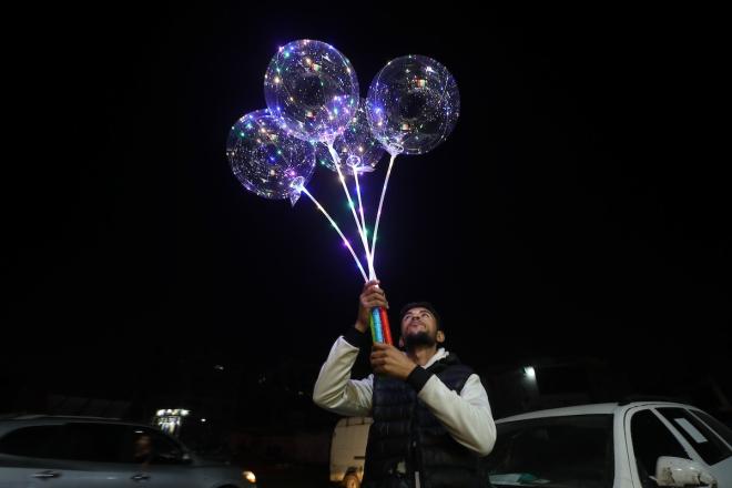 يبيع الباعة الفلسطينيون الطعام وغيره من السلع في سوق بمدينة غزة خلال اليوم الخامس من شهر رمضان المبارك، 22 فبراير/شباط 2026. تصوير: عمر أشتوي