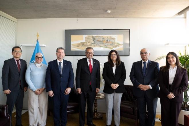 التقت وزيرة الخارجية والمغتربين الفلسطينية فارسين شاهين، المدير العام لمنظمة الصحة العالمية تيدروس غيبريسوس، بحضور المندوب الدائم لدولة فلسطين لدى الأمم المتحدة، السفير إبراهيم خريشي، على هامش الدورة الحادية والستين لمجلس حقوق الإنسان.
