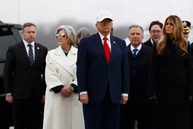 استقبل الرئيس الأمريكي دونالد ترامب جثث 6 جنود أمريكيين قُتلوا في الحرب الدائرة مع إيران، مؤكدا أن بلاده تسعى إلى اختيار رئيس في إيران "لا يقودها إلى مزيد من الحروب"، وأنه لا يريد تدخُّل الأكراد في إيران.
