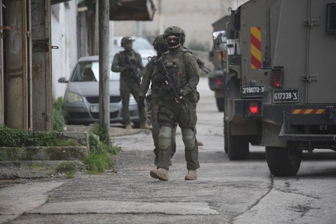 اقتحمت قوات الجيش الإسرائيلي مدينة نابلس، وداهمت العديد من المنازل وسط انتشار واسع النطاق في المنطقة وإطلاق قنابل الغاز المسيل للدموع، مما أسفر عن إصابة عدد من المواطنين بالاختناق. نابلس، الضفة الغربية، 26 فبرايرشباط 2026. صورة محمد ناصر