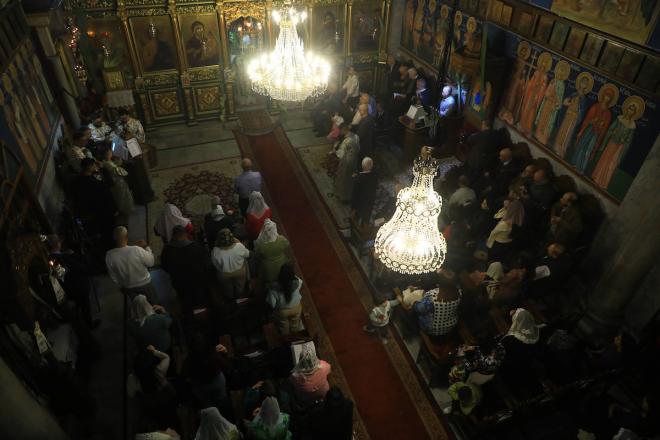 حضر مسيحيون أرثوذكس مقيمون في مدينة غزة، فلسطين، قداسًا في كنيسة القديس بورفيريوس احتفالًا بأحد الشعانين، الذي يُحيي ذكرى دخول السيد المسيح إلى القدس واستقبال الشعب له بأغصان النخيل.