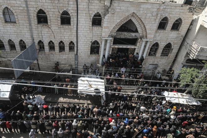 حضر أهالي غزة، في 7 أبريل/نيسان 2026، جنازة فلسطينيين استشهدوا في غارة جوية إسرائيلية استهدفت مدنيين متجمعين شرق مخيم المغازي للاجئين، في انتهاك لوقف إطلاق النار. (صورة: معز صالحي)