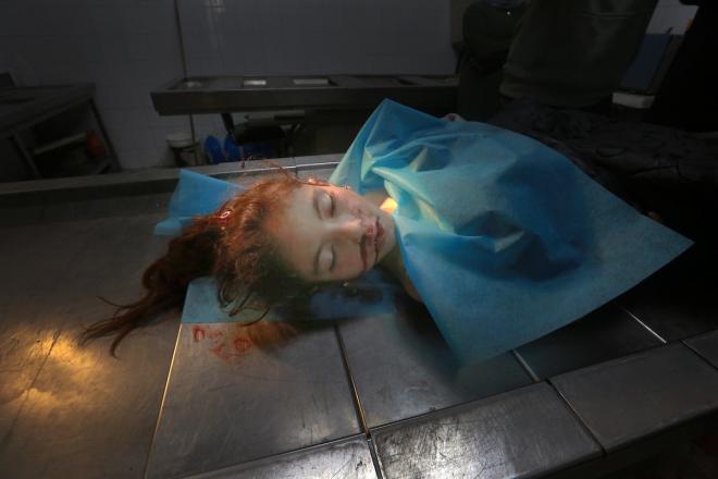 ودّع فلسطينيون جثمان الطفلة ريتاج عبد الرؤوف ريحان، البالغة من العمر 13 عامًا، في مستشفى الشفاء بمدينة غزة. وقد استشهدت ريتا بنيران الجيش الإسرائيلي التي استهدفت خيام النازحين في بيت لاهيا شمال قطاع غزة. 9 أبريل/نيسان 2026. صورة: بلال أسامة