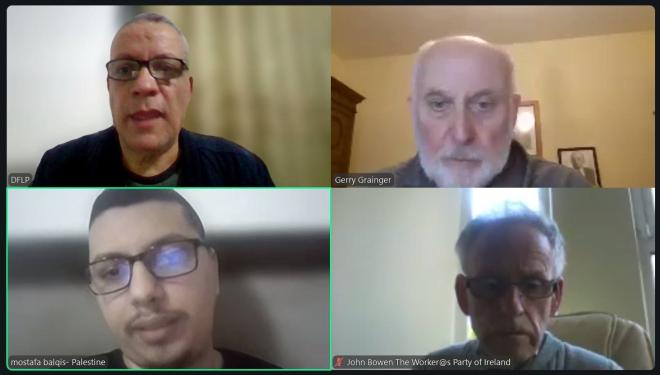 عقدت "الجبهة الديمقراطية لتحرير فلسطين" و "حزب العمال الإيرلندي" لقاء مشتركا عبر تقنية Zoom))، تناول آخر تطورات العدوان الإسرائيلي على قطاع غزة والضفة الغربية. وضم وفد حزب العمال عضو اللجنة التنفيذية المركزية، السكرتير الدولي ومسؤول العلاقات جيري غرينجر، وعضو اللجنة التنفيذية جون بوين. فيما ضم وفد الجبهة مسؤول دائرة العلاقات الخارجية فتحي كليب، وعضو الدائرة مصطفى بلقيس.