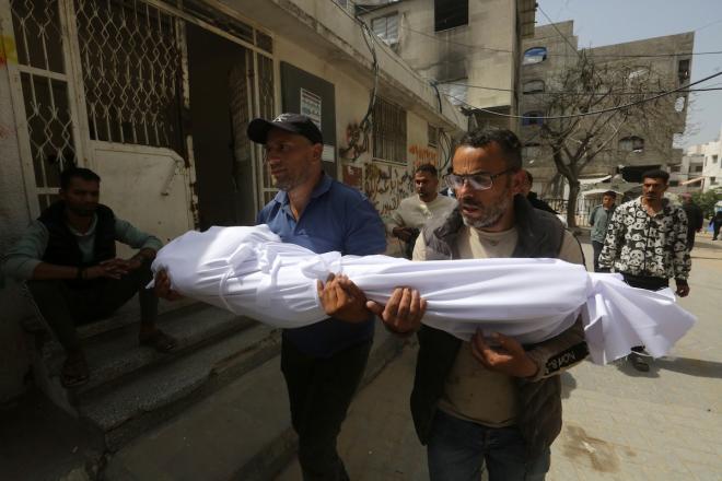 ودّع فلسطينيون ثلاث جثامين، من بينها جثامين الأخوين محمود وعيد أبو وردة وطفل، قُتلوا في هجومين منفصلين شنّهما الجيش الإسرائيلي في حيّي الزيتون والشجاعية شرق وجنوب مدينة غزة، في 17 أبريل/نيسان 2026. (صورة: بلال أسامة)