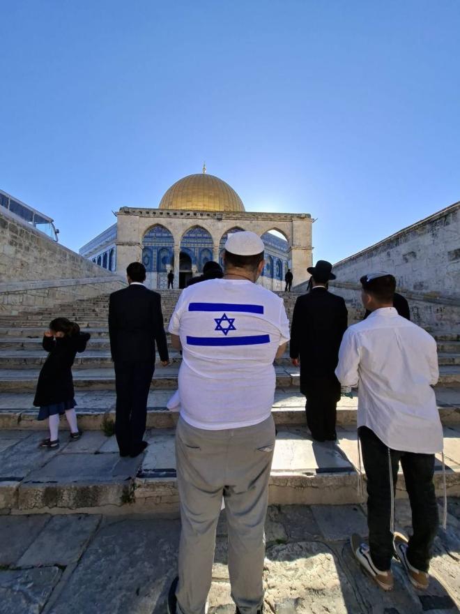كما وثّقت المصادر قيام أحد المستعمرين برفع علم الاحتلال أمام قبة الصخرة في الرواق الغربي، وارتداء آخرين قمصانًا تحمل علم الاحتلال، إلى جانب أداء طقوس جماعية وانبطاح داخل الأروقة، خاصة في المنطقة الشرقية من المسجد.