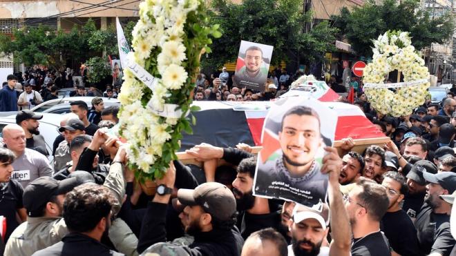 شيع المئات في العاصمة بيروت، أمس الثلاثاء، جثمان فلسطينيين اثنين استشهدا بنيران الجيش الإسرائيلي في جنوب لبنان.