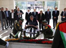 اشتية يضع إكليلا من الزهور على ضريح ياسر عرفات