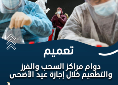 الصحة تعلن مواعيد دوام مراكز السحب والفرز والتطعيم أيام إجازة عيد الأضحى