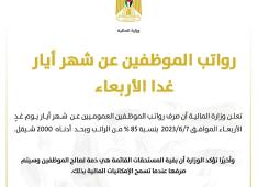 المالية الفلسطينية تعلن نسبة صرف رواتب الموظفين عن شهر أيار غدا