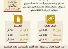 أسعار المحروقات في قطاع غزة عن شهر يناير 2023