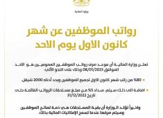 المالية الفلسطينية: رواتب الموظفين عن شهر كانون الاول يوم الاحد