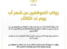 المالية الفلسطينية : رواتب الموظفين عن شهر آب يوم غد الثلاثاء