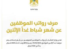 المالية الفلسطينية: صرف رواتب الموظفين عن شهر شباط غداً الاثنين