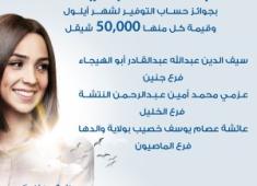 بنك الإسكان - فلسطين يعلن عن الفائزين بجوائز حسابات التوفير لشهر أيلول 2021