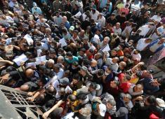 توافد الآلاف إلى مقرات الغرفة التجارية بغزة للتسجيل للحصول على تصاريح عمل