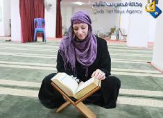 بعد ان اشهرت اسلامها..بريطانية تتلقى تعاليم الدين الحنيف في غزة
