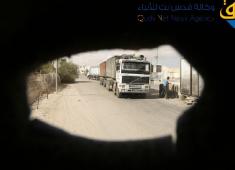 صور.. إدخال مواد البناء والوقود الى غزة من كرم أبو سالم