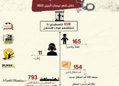اعتقال 1228 مواطنا بينهم 165 طفلا و11 امرأة في نيسان الماضي