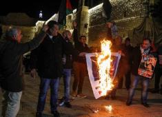 احراق صور بنس أمام كنيسة المهد في بيت لحم