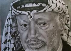 شاب من غزة ينتهي من رسم “بورتري“ لأبي عمار بقلم رصاص