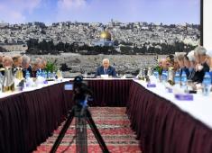 صور.. أبو مازن خلال ترؤسه اجتماعا للقيادة الفلسطينية