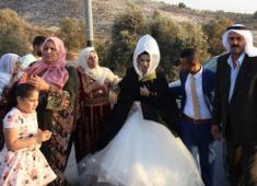 فيديو العروسان محمد ونهال يعبران الحاجز مشياً على الاقدام