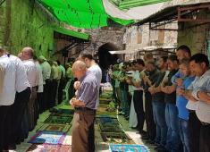 المقدسيون يؤدون صلاة الظهر في الشوارع وقرب أبواب الأقصى
