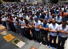 صور.. الآلاف يؤدون صلاة الجمعة على الحواجز الإسرائيلية بالقدس