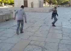 أطفال مقدسيون يتحدّون الاحتلال ويلعبون كرة القدم بساحات الأقصى