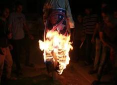 وقفة غاضبة في رفح تحرق دمية وصور لترامب
