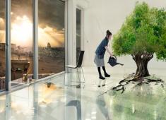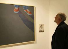 فنان فلسطيني شاب يحاور بالرسم لوحات فنان من جيل آخر
