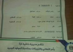طفل يحمل اسم "ياسر عرفات اسماعيل هنية"