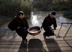 صور.. المسيحيون الكاثوليك يتعمدون بمياه "نهر الأردن"