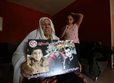 صور..حاجة فلسطينية تحمل صور احفادها الشهداء وتروي تفاصيل تهجيرها قبل 71 عام