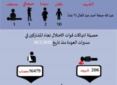 انفوجرافيك: حصيلة انتهاكات قوات الاحتلال للجمعة (58) من المسيرات السلمية