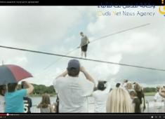 فيديو..مغامر أميركي يعبر وادى على حبل رفيع
