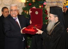 ثيوفيلوس الثالث يقلد أبومازن وسام الصليب الذهبي الكبير