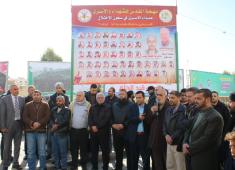 لوحةٍ تحمل أسماء وصور “عمداء الأسرى“ على مفترق السرايا بغزة