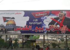 لافتة في غزة تصف وزير خارجية البحرين بـ “عراب بيع القدس”