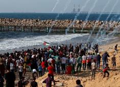 فيديو عشرات الإصابات بقمع فعاليات المسيرة البحرية الثامنة شمال غرب القطاع